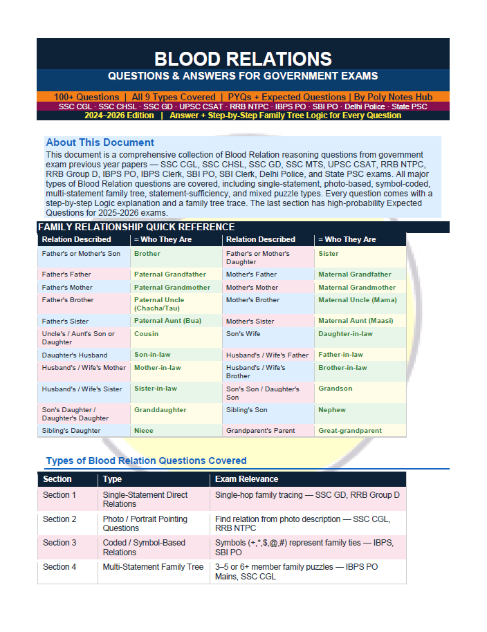 Our reasoning PDFs cover every single topic that appears in government exams — from basic verbal reasoning to advanced logical puzzles. Each topic PDF includes concept explanation, solved examples, practice sets, and answer keys.