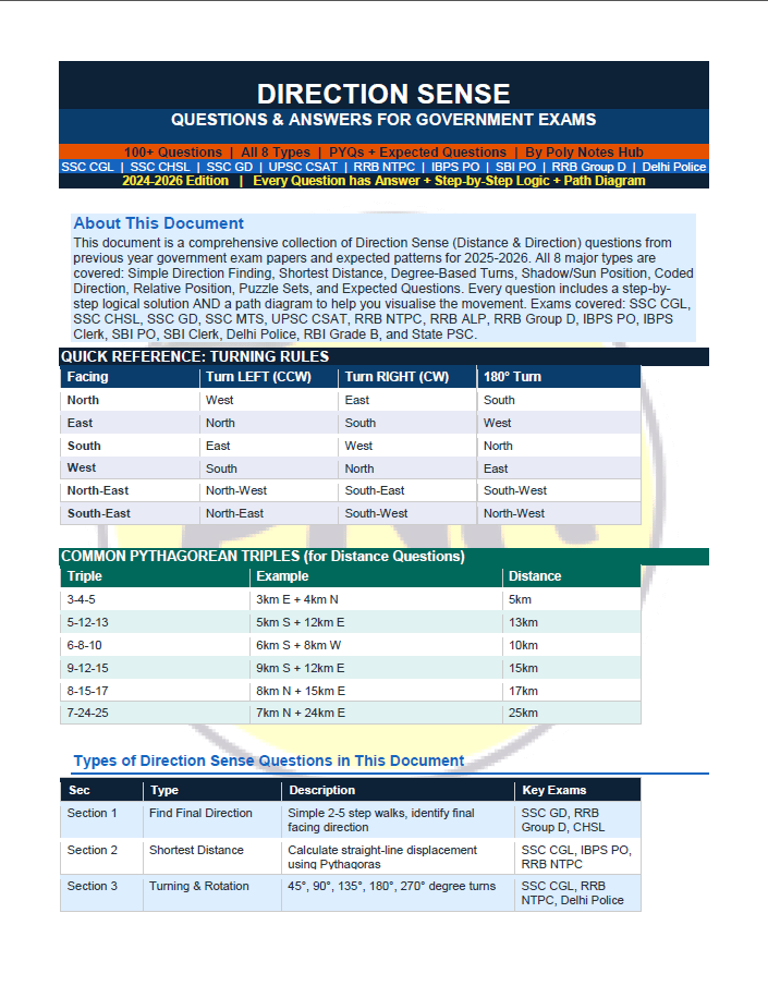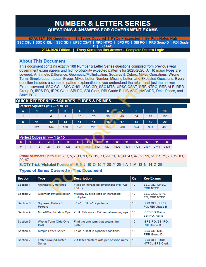 This page provides free reasoning questions and answers PDFs for all major exams — SSC CGL, IBPS PO, SBI PO, RRB NTPC, Railway Group D, PSC exams, Delhi Police, LIC AAO, and more. Every PDF is available for free download, includes detailed answer keys and explanations, and is updated for the 2025–2026 exam cycle.