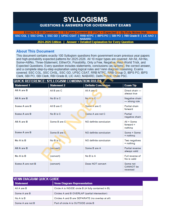 The most complete collection of Logical Reasoning Questions & Answers PDF — topic-wise, exam-wise, and difficulty-wise. Covers SSC, Bank, Railway, PSC, Police, LIC and every major competitive exam.