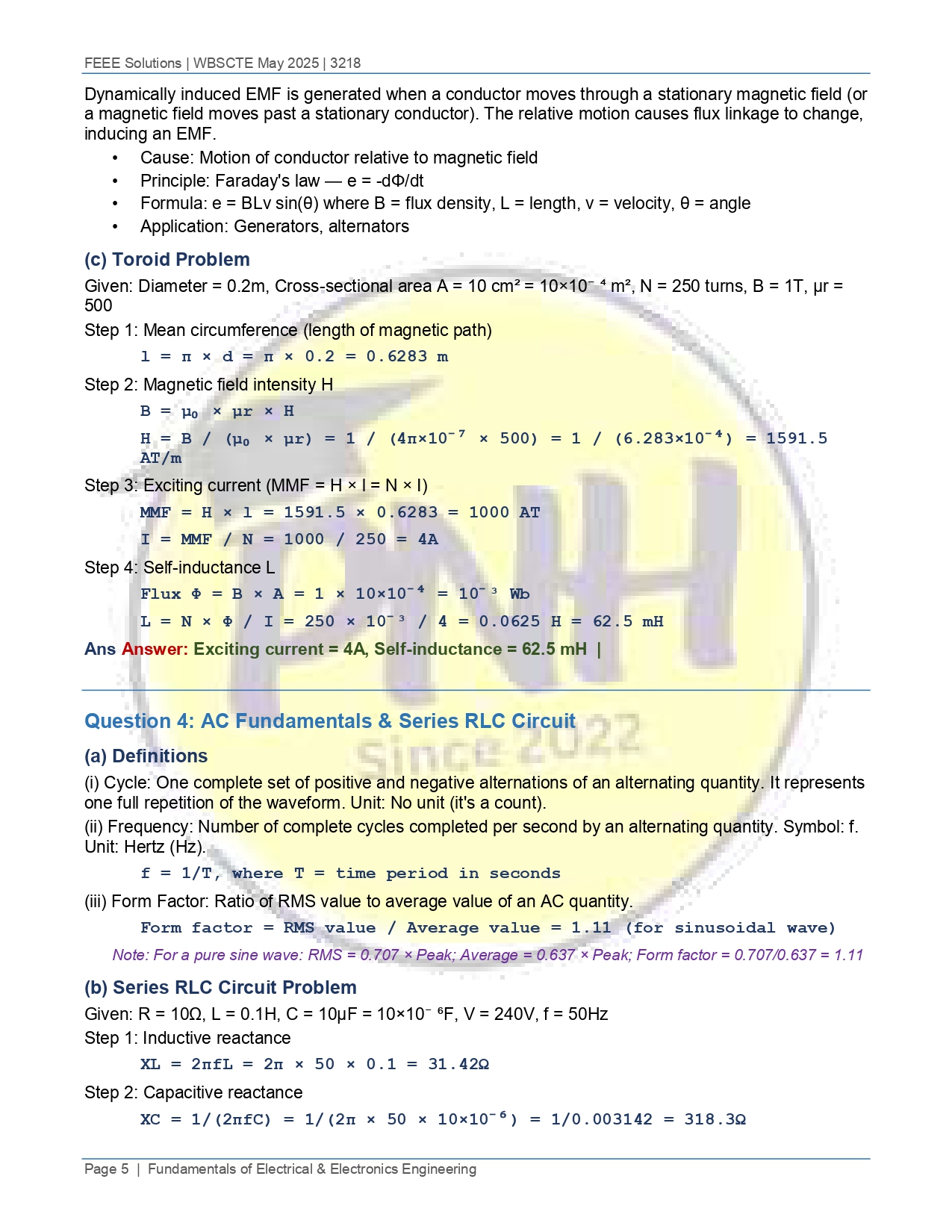 FEEE 2025 Question Paper Solution PDF of WBSCTE Board for Polytechnic 2nd Semester Students